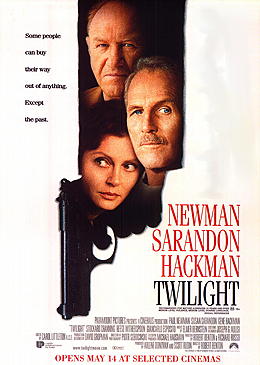 | Twilight "They have the starring roles in their own lives" Twilight is set in the luxury of talented, tasteful Los Angeles. This is not the flash and excess of L.A. Story, or the ghettos of a contemporary thriller, but rather the world of sculptural Art Deco ranch houses, where the architects and the houses have as much star power as the inhabitants who pass through them. Catherine (Susan Sarandon) and Jack (Gene Hackman) are a golden couple facing the sunset of their twenty-year love affair. He is dying of cancer, and on the outskirts of their grief, above the garage, lives Harry Ross (Paul Newman). | ![]() |