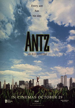 | Antz Life's hard when you're the middle child in a family of millions. Poor Z (pronounced Zee not Zed), a worker ant with delusions of individuality. He lies on his ant analyst's couch wracked with ant angst. Of course his voice is that of Woody Allen, who else could so portray the agonies of the under-tall? And so begins our tale. It's a feature-length 3D animated story of the little-ant-who-could. It's about love from afar and below and the trials and tribulations of life when you step out of your 'place' and try something a little different. The story is filled with little puns to appeal to adults, perhaps more than children, like the ant angst and the worker ants 'being the (demolition) ball'. The Queen's (Anne Bancroft) production line mothering would probably touch a cord with many a working mother, for example.  | ![]()  |